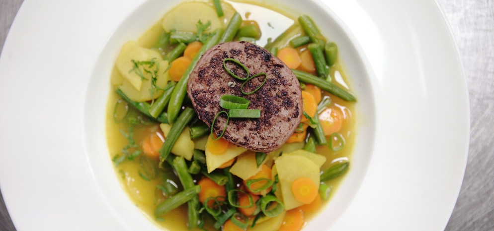 - Peper het tartaartje en bak het in 2 minuten om en om (tartaar blijft dan mooi rood van binnen, 4 minuten voor meer doorgebakken).