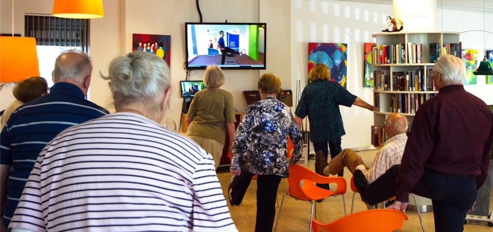 Tijdens zijn bezoek aan seniorensociëteit Andromeda in Eindhoven liet staatssecretaris Van Rijn zich uitgebreid informeren over verschillende manieren waarop technologie kan worden ingezet om het onderlinge contact binnen een wijk en het welzijn van ouderen te ondersteunen. Bewegen op Afstand is daarvan een geslaagd voorbeeld: het geeft mensen de mogelijkheid om laagdrempelig, dicht bij huis en samen met anderen te sporten onder begeleiding van een professionele sportcoach.