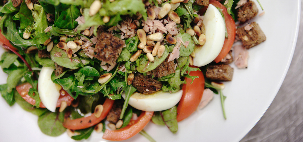 Onder de noemer ‘Smakelijk sportief’ vind je op Sport.nl elke week een smakelijk én sportief recept. Deze week: salade met tonijn en croutons. Makkelijk te bereiden en goed voor het herstel van je spieren. Eet smakelijk!