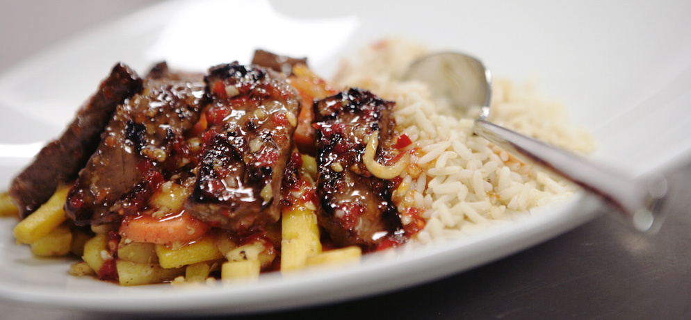 Smakelijk sportief: Thaise biefstukrepen met wintergroenten en rijst