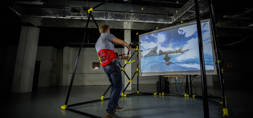 Als spelfanaat kun je je hart ophalen bij de gameversie van de Kite Sim: zonder kracht op de lijnen van de kite, maar met een virtual reality bril op je neus, waardoor je volledig wordt ondergedompeld in de ervaring van het kitesurfen terwijl je allerlei stunts uitvoert.