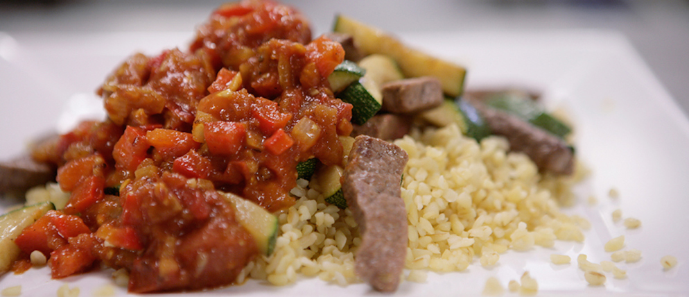 Smakelijk sportief: bulgur met courgette- en runderpiripiri
