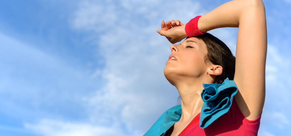 Bij warm weer zweet je tijdens het sporten nog meer dan anders. Dat zweet kan gemakkelijk verdampen als je kleding draagt die gemaakt is van licht, ademend en los geweven materiaal. Lycra is daar een voorbeeld van. Een polsbandje is handig om je handpalmen droog te houden en met een hoofdband houd je het zweet uit je ogen, wel zo fijn tijdens het lopen.
