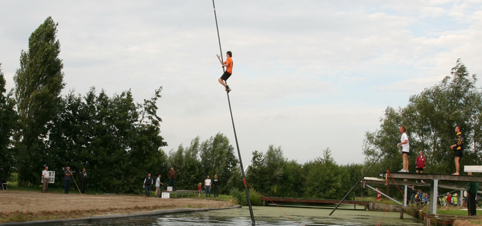 Je neemt een felle aanloop op de schans, springt richting de polsstok, klimt naar de top van de stok en zwiept al zwevend over het water naar voren, om te landen in het zandbed erachter. Als alles goed gaat tenminste, want als je niet ver genoeg komt, beland je met een plons midden in het water. Fierljeppen – het Friese woord voor polsstokverspringen – is een echte zomersport.