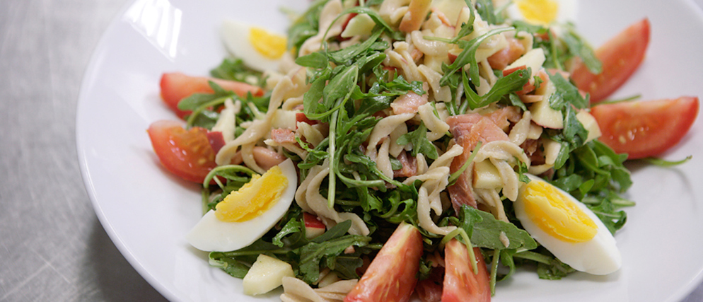 Smakelijk sportief: volkorenpasta met rucola en gerookte zalm