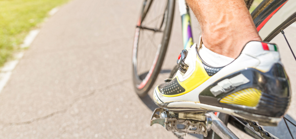 Veel wielrenners dragen zogenaamde ingeklikte schoenen. Met een plaatje op je schoen en een kliksysteem op het pedaal van je fiets klik je je schoenen zo in en uit. Ingeklikte schoenen hebben als voordeel dat je ook opwaartse kracht kunt zetten: je duwt je pedaal niet alleen naar beneden, maar kunt hem ook omhoog trekken, waardoor je nog harder fietst.