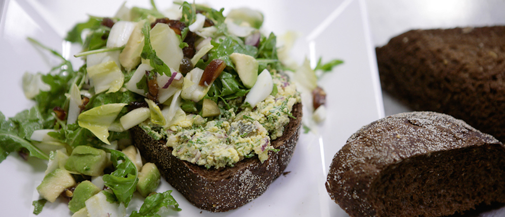 - Serveer de salade op het brood met de spread.
