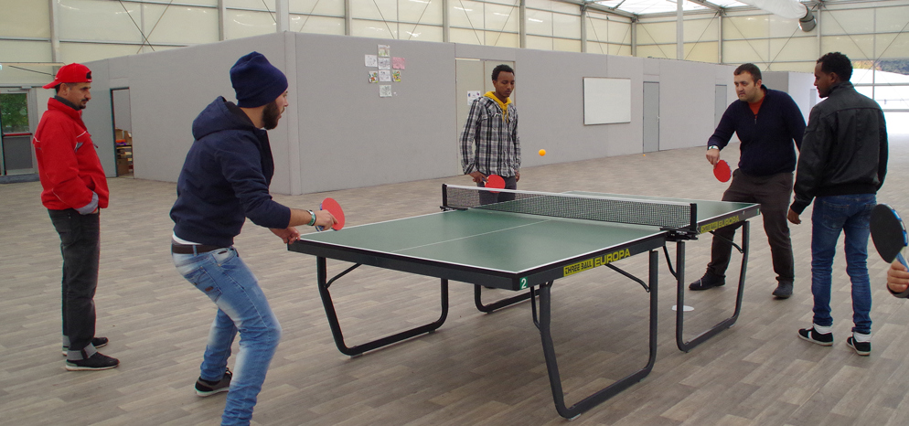 Een tafel, batjes en balletjes. Meer is er niet nodig om tafeltennis te kunnen spelen. De Nederlandse Tafeltennisbond (NTTB) heeft samen met haar partners verschillende opvanglocaties voor vluchtelingen voorzien van deze materialen, zodat zij tijdens een spelletje tafeltennis even de tijd kunnen verdrijven en niet hoeven te denken aan de nare situatie waarin ze zitten.