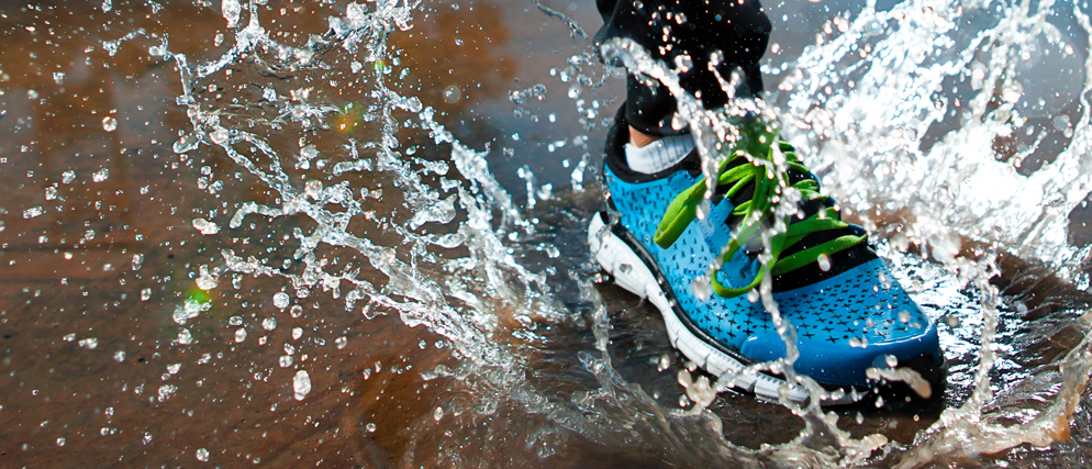 Ook katoenen sokken zijn niet handig tijdens een regenbui. Het is beter wollen sokken aan te trekken of sokken die gemaakt zijn van ander waterafstotend materiaal. Kijk ook uit met hardlopen langs een drukke weg waar auto’s langsrijden: voor je het weet word je ingehaald door een auto die vol door een plas gaat, waardoor jouw schoenen en sokken drijfnat worden.