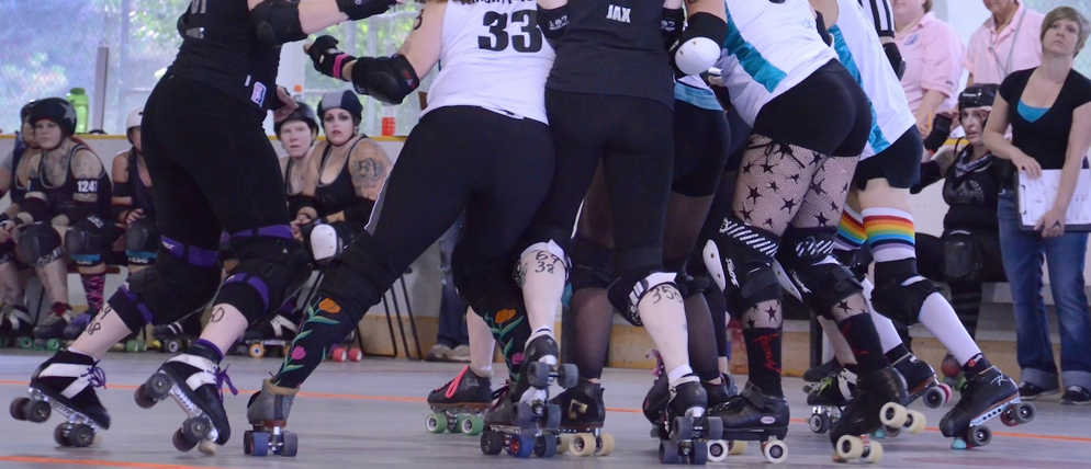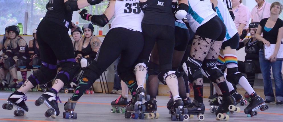 Je tegenstanders hoeven dat natuurlijk niet zomaar te laten gebeuren. Ze heten niet voor niets blockers en mogen dus van alles doen om de jammer te hinderen in haar poging om te scoren. Omdat dat er niet altijd zachtzinnig aan toe gaat, draag je als speler verplicht kniebeschermers, elleboogbeschermers, polsbeschermers, een helm en een mondstuk.