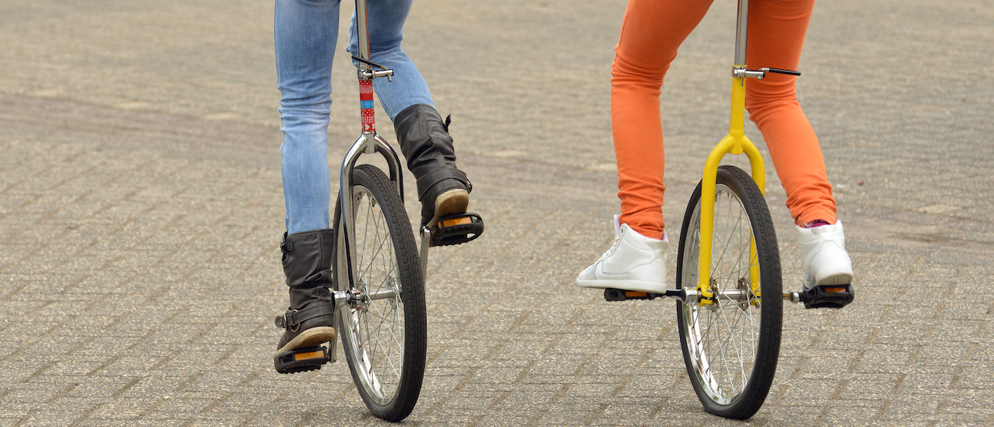 De eenwieler is vooral bekend uit het circus. Daar doen acrobaten allerlei kunstjes op deze fiets met één wiel, vaak ook nog zonder zadel. Een goed gevoel voor evenwicht is daarbij essentieel, net als altijd blijven trappen.